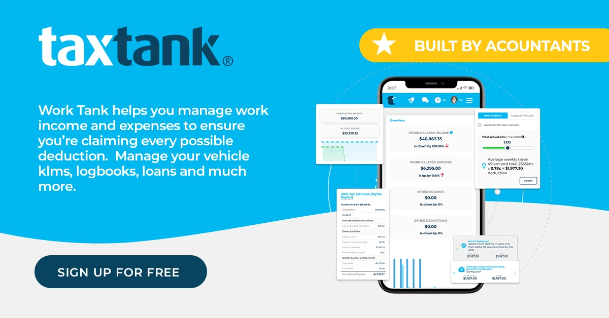 TaxTank is Australia’s only purpose-built software to help manage your income tax all year round.  Track performance, monitor your real-time tax position every day of the year, and keep all your receipts and documents securely stored in one audit-ready platform. With powerful automation tools, TaxTank helps you claim every eligible deduction accurately and confidently, without the last-minute stress at tax time.