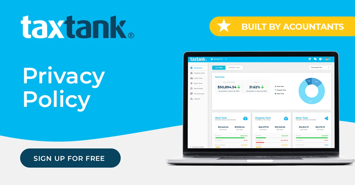 Please note this Privacy Policy forms part of the TaxTank Pty Ltd ABN 43 633 617 615 (TaxTank, we, our, us and other similar terms) terms and conditions of our various agreements with you, including the TaxTank Site Terms of Use and TaxTank SaaS Agreement.