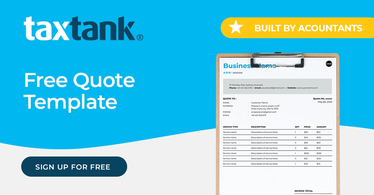 We believe in empowering everyday Australians to take ownership of their tax. That’s why we’ve created this free quote template. This quote template will let you easily create quotes to send to your clients.