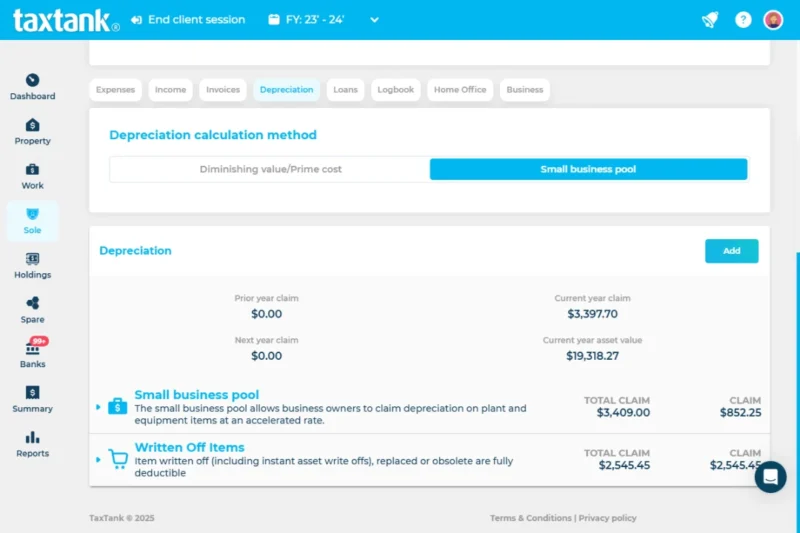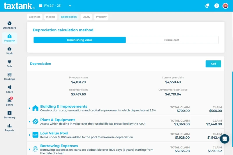 - Maximise claims with automated depreciation